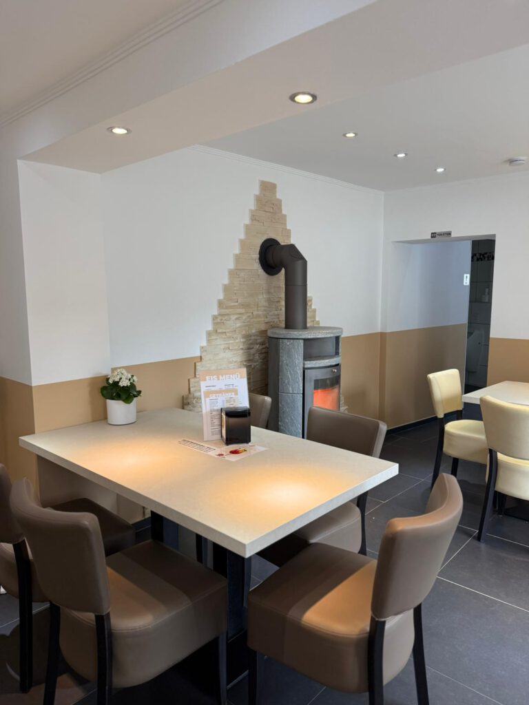 Auch im Innenbereich lädt die Eis Kiste in Solingen Burg zum Verweilen ein: Ein großzügiger, gemütlicher Raum mit Kamin schafft eine warme, entspannte Atmosphäre – perfekt für kühle Tage oder einfach eine bewusste Auszeit. Ob ein ruhiger Nachmittag mit der Familie, ein Treffen mit Freunden oder ein besonderer Anlass wie ein Geburtstag – hier findest du den passenden Rahmen für jede Gelegenheit.