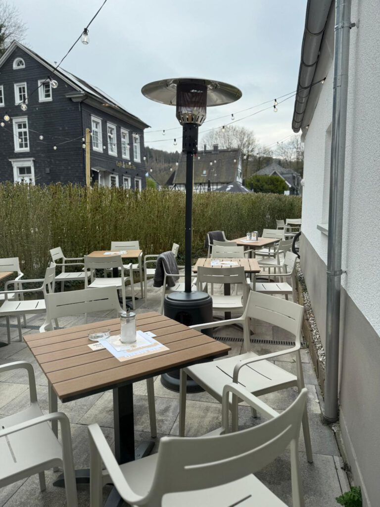 Unsere sonnige Terrasse in Solingen Burg ist der perfekte Ort, um das schöne Wetter zu genießen und einfach mal abzuschalten. Ob entspannt am Nachmittag mit einem Eis oder Kaffee oder am Abend bei einem kühlen Drink – hier findest du deinen Platz an der frischen Luft. Auch an kühleren Tagen laden gemütliche Decken dazu ein, draußen zu sitzen und die besondere Atmosphäre zu genießen. Triff dich mit Freunden, mach eine Pause unterwegs oder lass den Tag bei einem Aperol Spritz, Bier oder Wein entspannt ausklingen.
