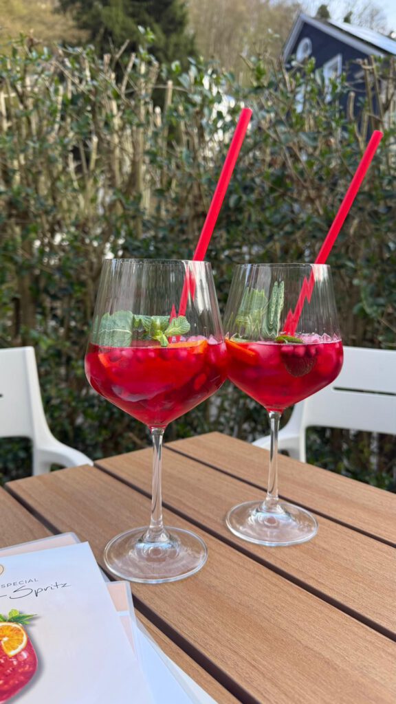 Genuss hat hier viele Facetten: Neben Eis und Kaffeespezialitäten erwartet dich eine Auswahl an erfrischenden Drinks – von Aperol Spritz und Wein bis hin zu Bier und alkoholfreien Alternativen. Ergänzt wird das Sortiment durch wechselnde Wochenend-Specials, die immer wieder neue Highlights setzen. Ob ein Granatapfel-Spritz in der Sonne oder ein entspannter Drink am Abend – hier lässt sich jeder Moment ganz bewusst genießen.